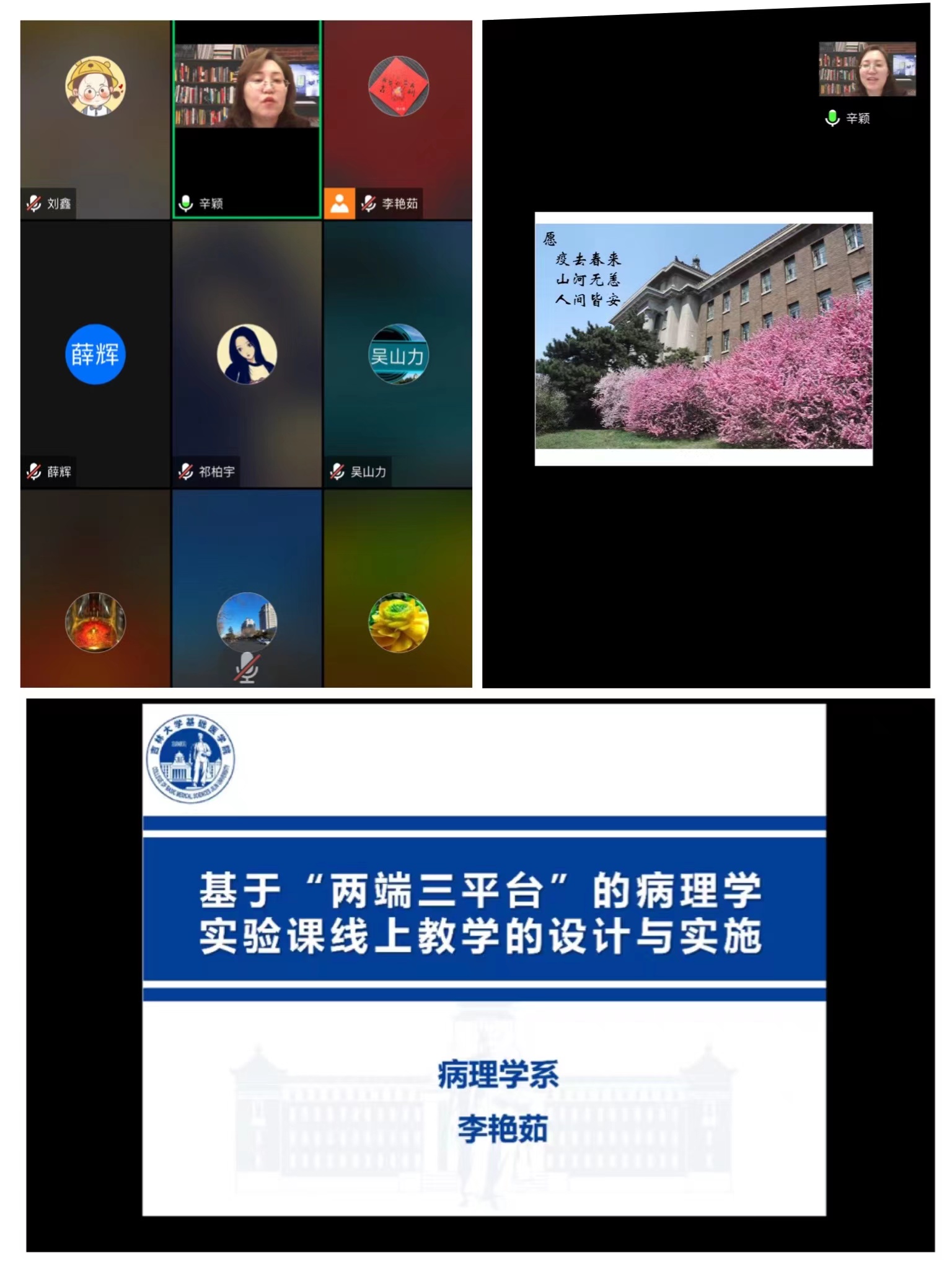 分别在云端组织了病理学实习课线上教学观摩和线上教学交流与培训活动,共有60余名教师参加,活动由主管教学的辛颖副院长主持。