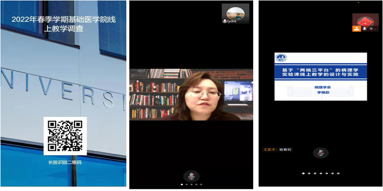 自3月8日线上教学开始,通过与学系主任、教学秘书、任课教师的电话沟通、线上问卷调查,以及督导的听课反馈,学院汇总了教师对于线上教学的需求与建议,并针对线上教学平台如何的熟练的综合运用,线上教学的课堂设计等共性问题,于3月17日、3月21日和3月22日,分别在云端组织了理论课、实习课线上教学观摩和线上教学交流培训活动,让老师们体会了利用腾讯会议+同步课堂+虚拟资源三平台的有机结合,及设计抢答、问答、学生展示等多项互动活动,打造的良好线上教学效果。此次观摩结合培训的教学活动,促进了基础医学线上教学从有序开展到高质量的提升。