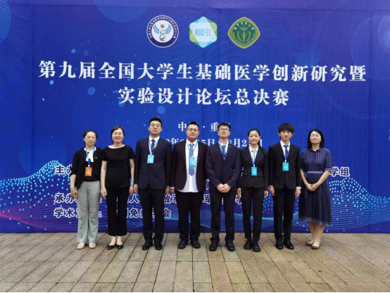 2023年8月19日至22日、25日至28日,由高等学校国家级实验教学示范中心联席会基础医学组主办,重庆医科大学、中国人民解放军陆军军医大学承办的“一带一路”国际大学生医学基础创新实验设计论坛决赛、第九届全国大学生基础医学创新研究暨实验设计论坛决赛在重庆圆满落幕。历经校内初赛选拔、区赛复赛评比,我校进入决赛的9支代表队经过激烈角逐,共获得金奖5项,铜奖4项,最佳学术奖1项,最佳风采奖1项,高校优秀组织奖1项,得到了组委会及评审专家们的一致好评与认可。