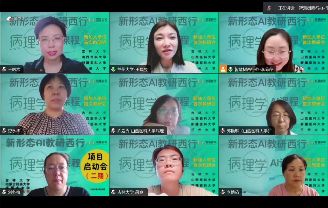 首先由新加入的兰州大学、新疆医科大学、山西医科大学的课程负责人介绍单位及成员情况。兰州大学王晨昱教授介绍了单位情况及教师队伍,表示很高兴加入新形态教研西行二期项目,期待新形态教研西行二期项目顺利开展,并取得更多的成果。