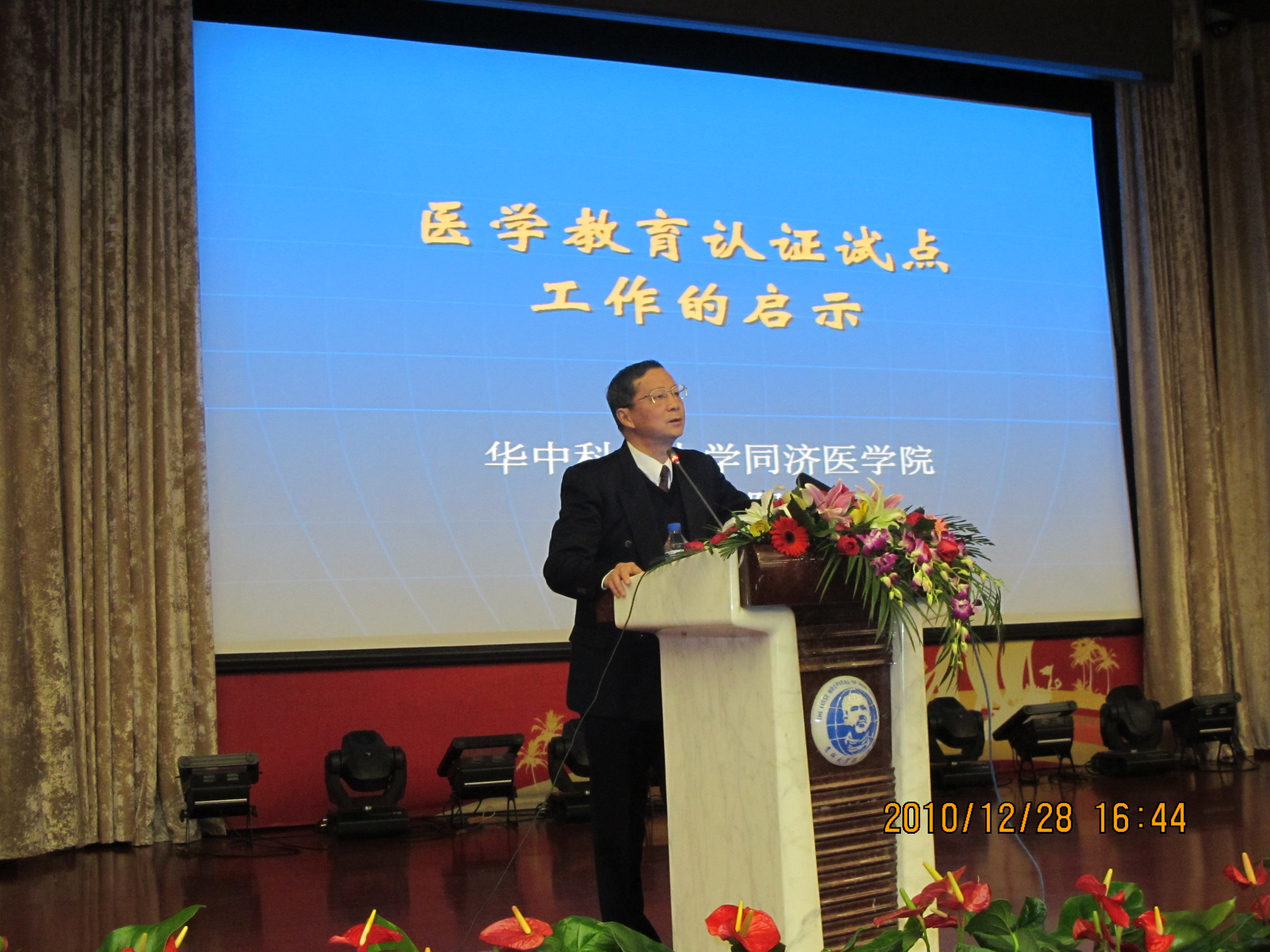 文历阳教授的报告结束后,白求恩医学院院长李玉林教授代表展涛校长和临床医学专业认证领导小组,对我校自今年八月份开始启动的临床医学本科专业认证工作进展进行了总结,并对下一步工作进行了具体布置和动员。