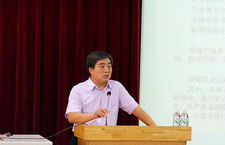 医师资格考试数据分析》报告。对我校2011年医师资格考试总体情况进行了数据分析,详细分析解读了我校临床医学、口腔医学、预防医学的学生执业医师考试情况,并对一些具体问题进行深入探讨。最后,王县成对管理人员、教师及学生提出的具体问题进行了详细解答。报告会得到了师生普遍好评。