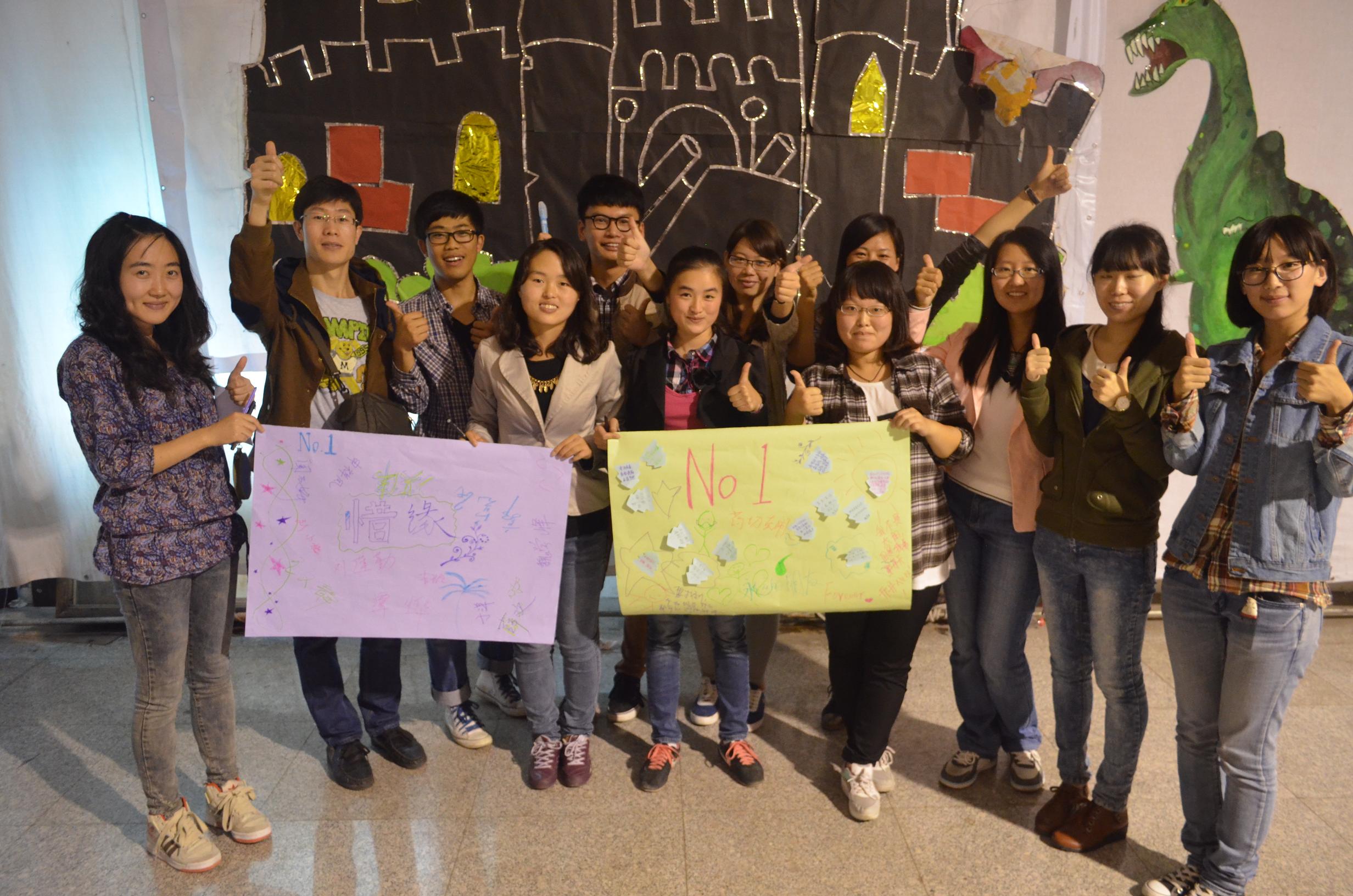 研究生朋辈心理辅导员---2012级硕士生王晓琴和新生班级干部一起组织全体2013级研究生,进行了以“我们是相亲相爱的一家人”为主题的一系列班级团体心理辅导活动。