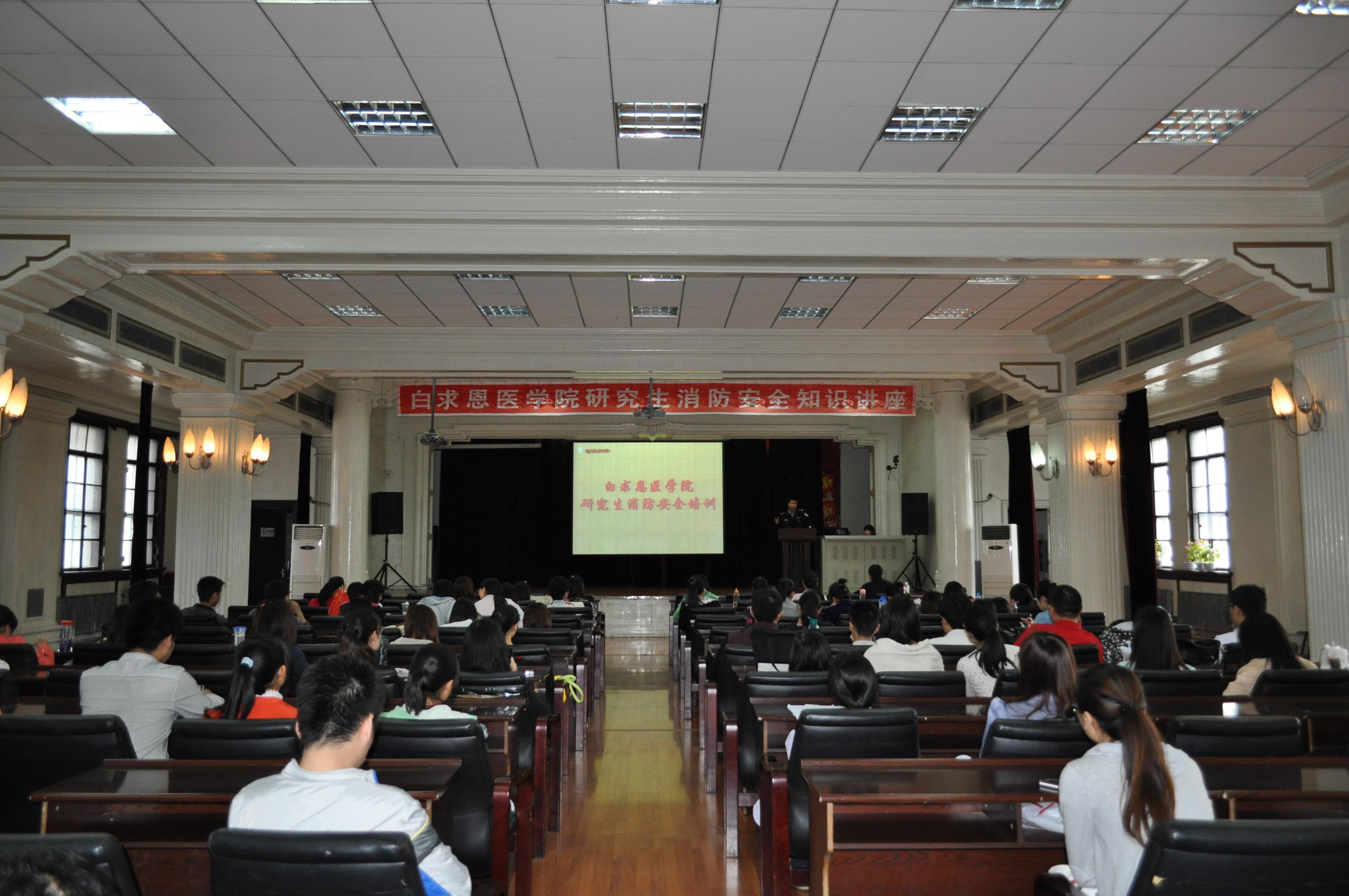 为提高研究生的消防安全和人身安全意识,共同营造安全温馨的学习和生活环境,9月20日上午,白求恩医学院研究生会邀请新民校区保卫办的安志成科长在基础楼二楼多功能学术报告厅为2012级研究生进行了消防安全知识讲座。新民校区保卫办的唐吉祥老师和2012级研究生一起参加了讲座。讲座由2012级研究生会主席肖月主持。