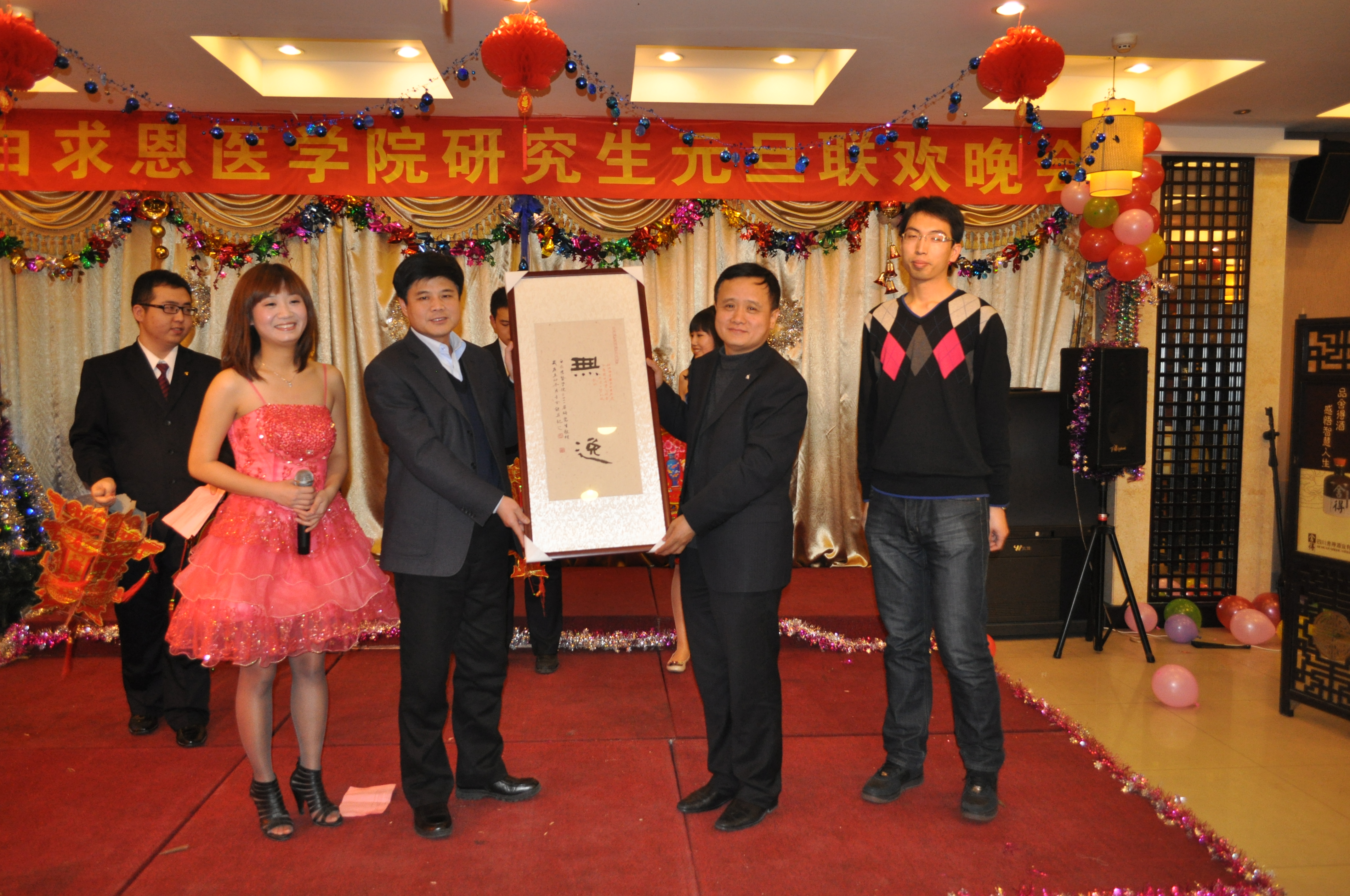校长助理、白求恩医学部常务副学部长兼白求恩医学院院长李凡,白求恩医学院党委书记屈英和,常务副院长孙连坤等学院全体领导班子成员和研究生办公室老师及近200名研究生一起参加了晚会。