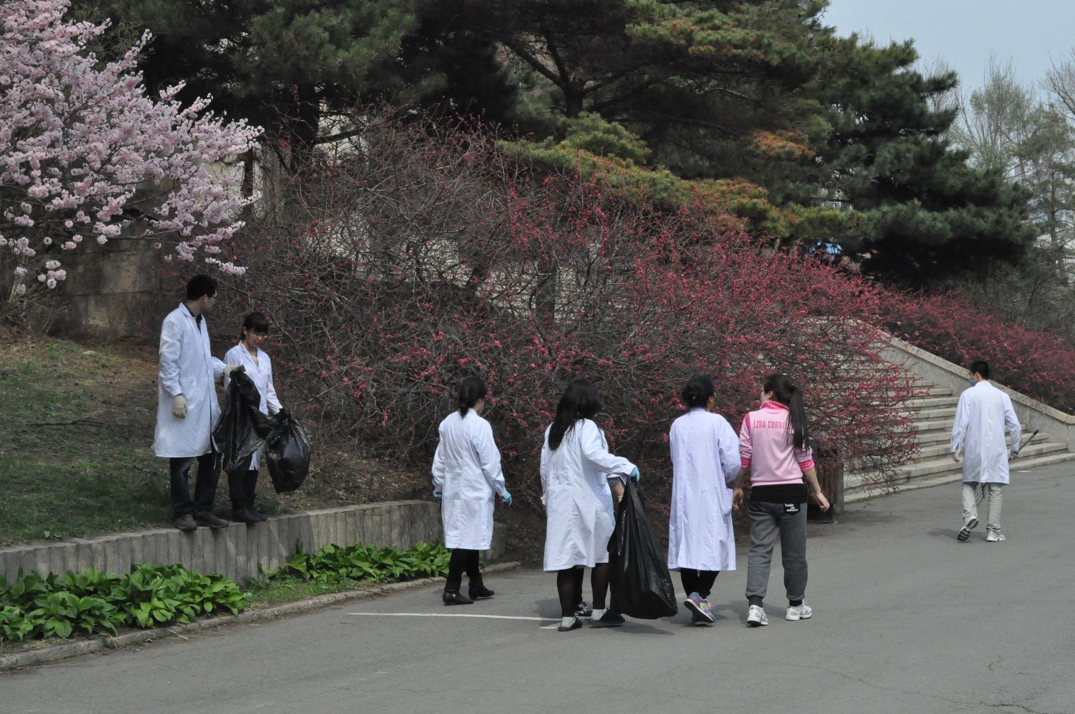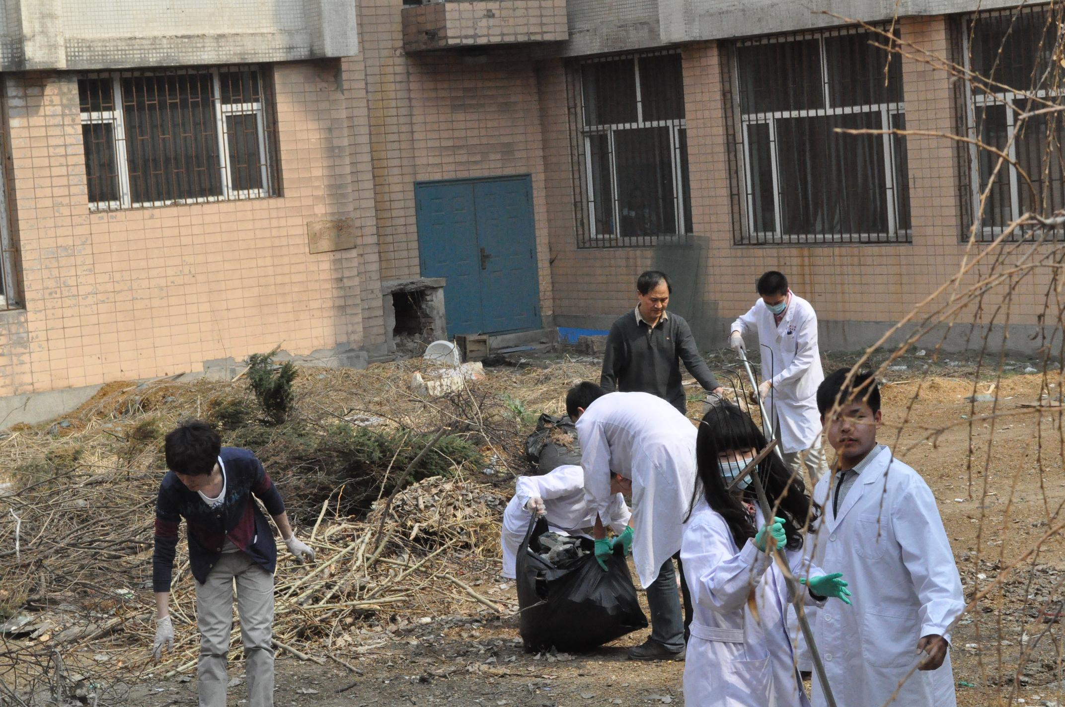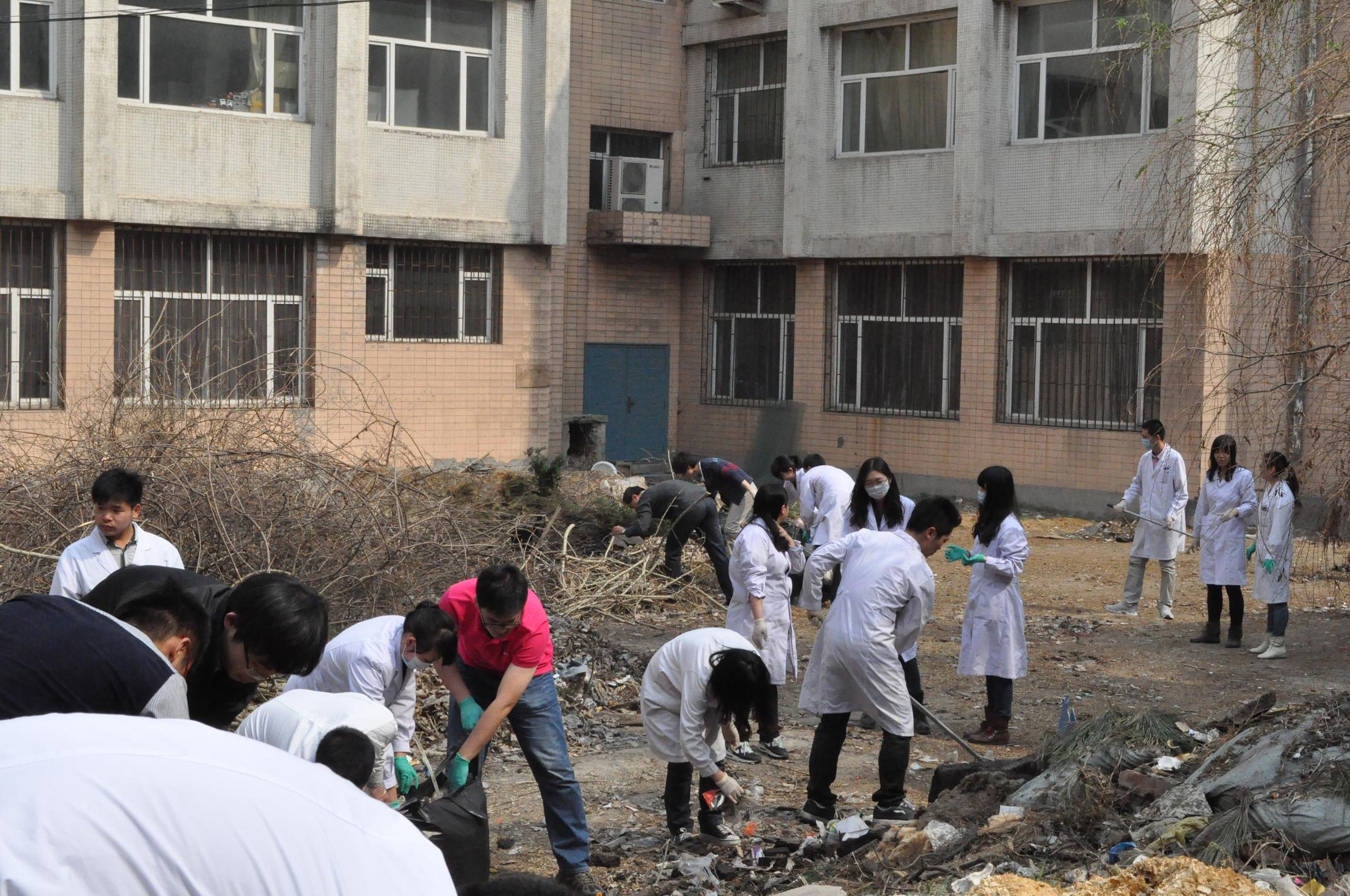 在学院行政副院长程丕显、党委副书记费淑波、学院办公室王松老师的带领下,研究生分为三组,分别将基础楼内外卫生进行了彻底清洁。首先,清理了基础楼院内草坪上的白色垃圾、杂草,并将基础楼后垃圾站周围进行了打扫。之后,参加活动的研究生以班级为单位,分别深入各学系、实验室清洁门窗和玻璃。